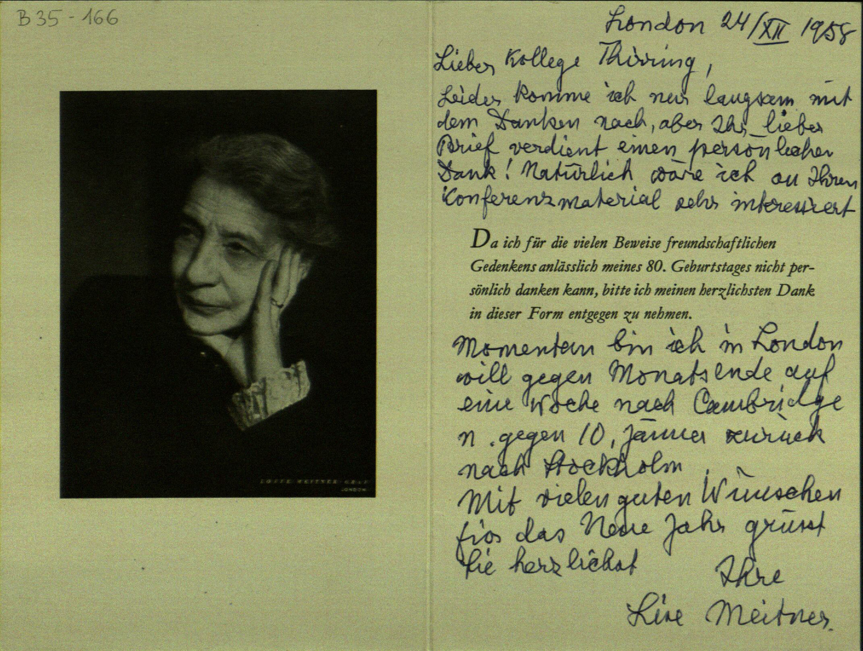 Despite the difficulties Meitner had experienced throughout her life, in her mid 80ies, she confidently looked back on her accomplishments: ‘I believe all young people think about how they would like their lives to develop; when I did so I always arrived at the conclusion that life need not be easy provided only it was not empty. And this wish I have been granted. That life has not always been easy–the first and second world wars and their consequences saw to that–while for the fact that it has indeed been full, I have to thank the wonderful development of physics during my lifetime and the great and lovable personalities with whom my work in physics brought me in contact.’ (Meitner 2015 [1964], p. 2).