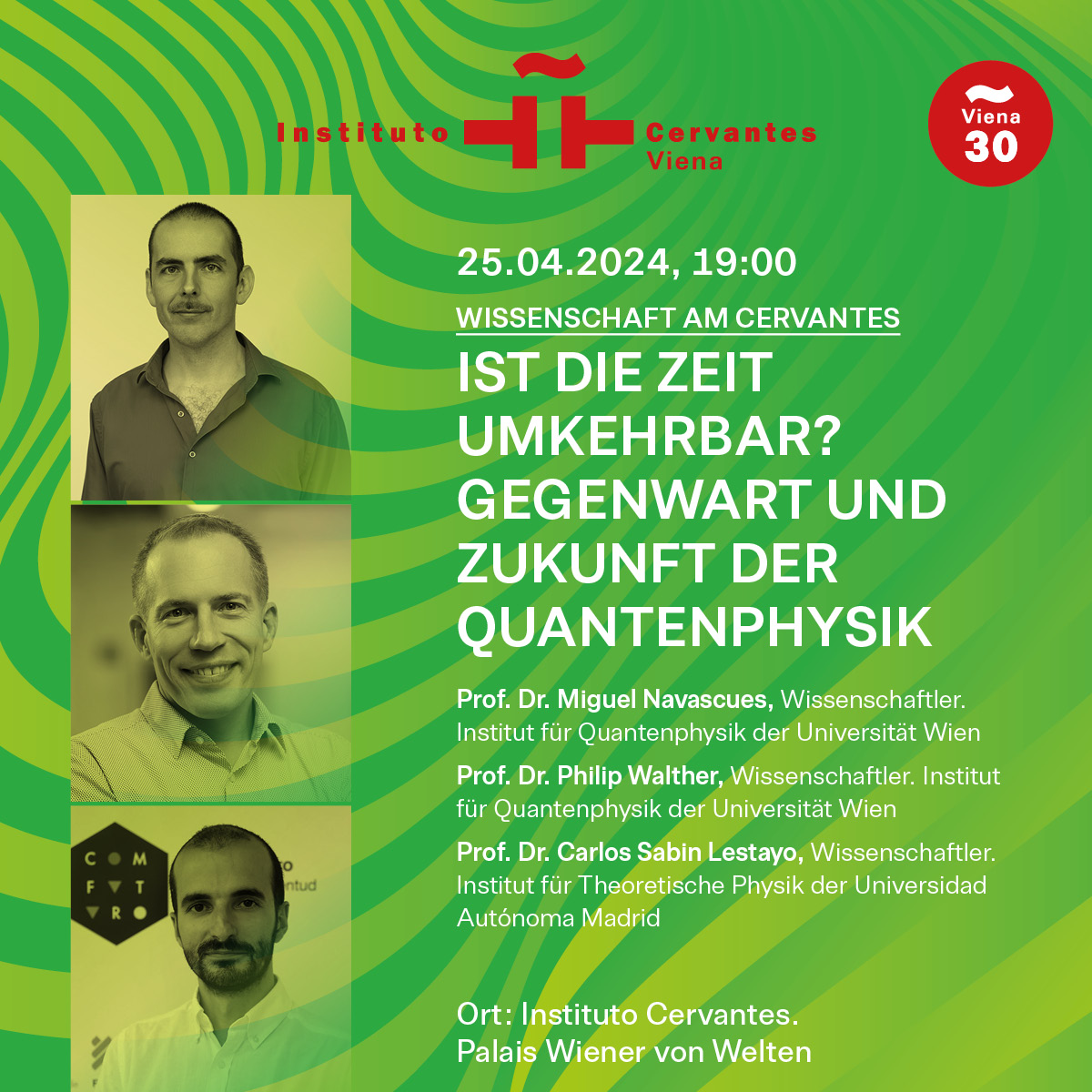 Die meisten grundlegenden physikalischen Gesetze sind zeitsymmetrisch. Das heißt, sie wirken in beiden Zeitrichtungen gleich. In der Praxis wissen wir jedoch, dass wir eine solche Zeitumkehr nicht jeden Tag erleben. Ein Glas, das auf dem Boden zerbricht, kehrt niemals an den Ort zurück, von dem es gefallen ist. Das Problem ist, dass unsere physikalischen Theorien auf Näherungswerten beruhen. Führende österreichische und spanische WissenschaftlerInnen werden ihr Wissen zu diesem Thema, einem der aktuellsten der Quantenphysik, weitergeben.